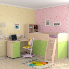 Кровать-чердак "Дюймовочка-1" Дуб молочный/салатовый | мини фото 1