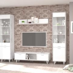 Гостиная Эго, модульная (на ножках) Бетон светлый/Белый глянец