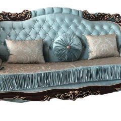Красивое название для красивого дивана. Акцент сделан на богатый резной декор каркаса молочного цвета. Его цветочные мотивы изящно сочетаются с рисунком сидения. Диван раскладной трехместный Аделина крем. Два варианта исполнения ткани: бежевое золото или бирюза.