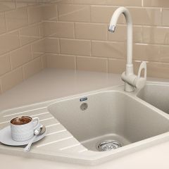 • Угловая двухсекционная мойка с отверстием под смеситель