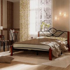 Кровать "Венера 4 Лайт" черная (1400*2000) (ножки-махагон) с коваными элементами
